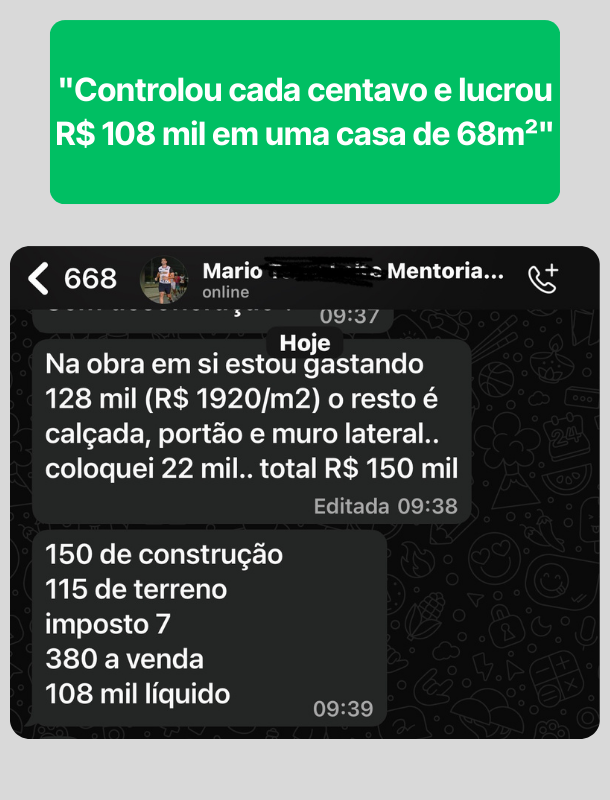 Eu sei o que é ver o dinheiro da obra sumir sem entender pra onde foi. Passei por isso...