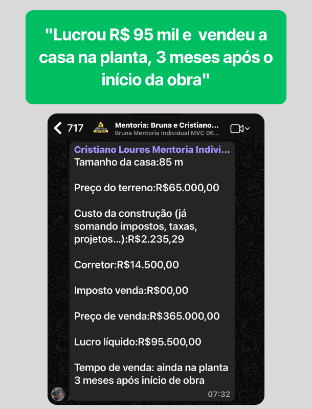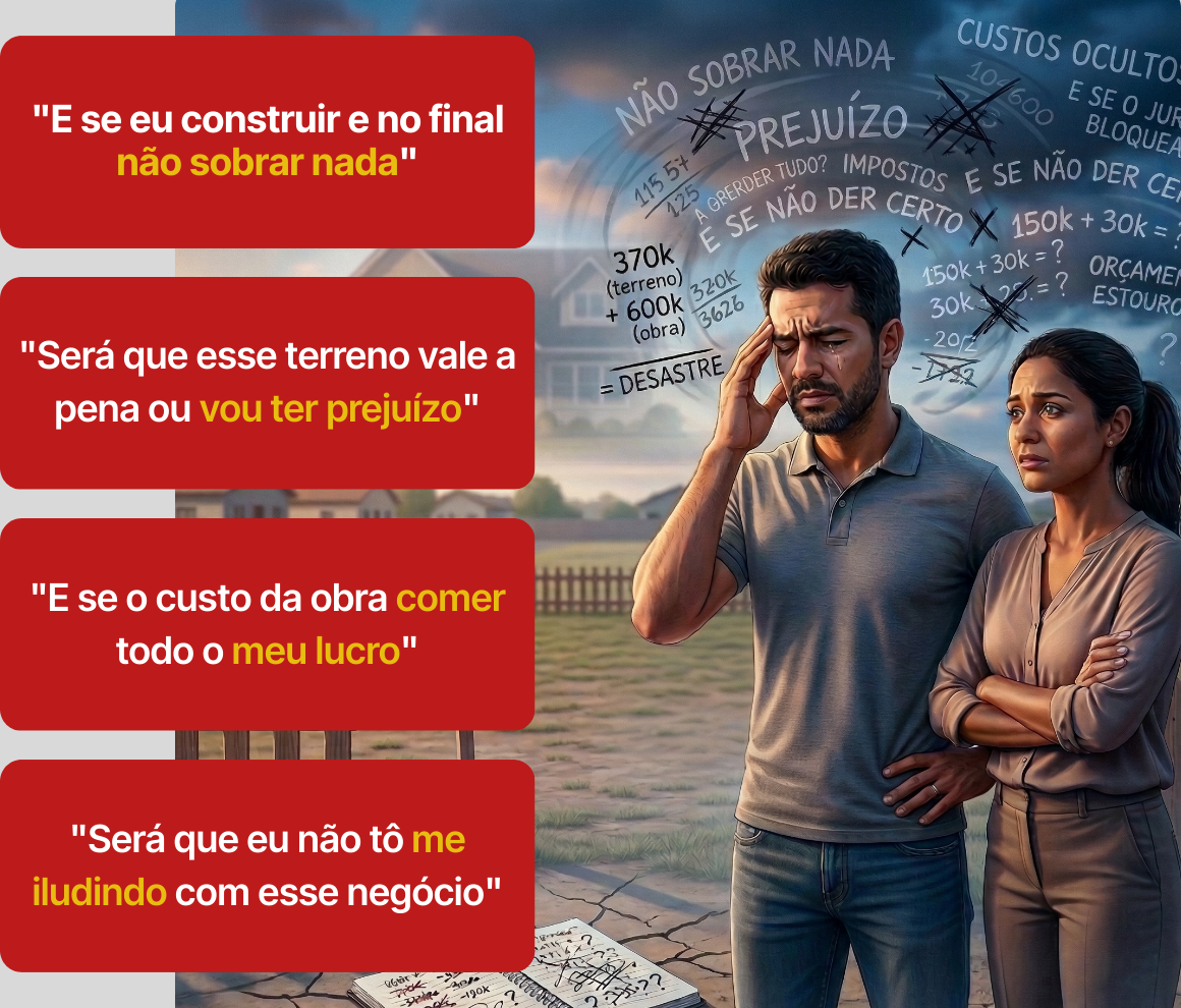 Veja exatamente quanto vai sobrar no seu bolso depois de pagar terreno, obra, impostos, corretor e financiamento. Sem surpresa, sem achismo.