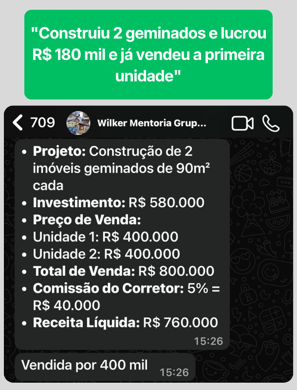 Você terá em mãos uma planilha de viabilidade automática com passos simples e diretos que tornará impossível você começar uma obra sem saber o lucro real — em menos de 15 minutos.