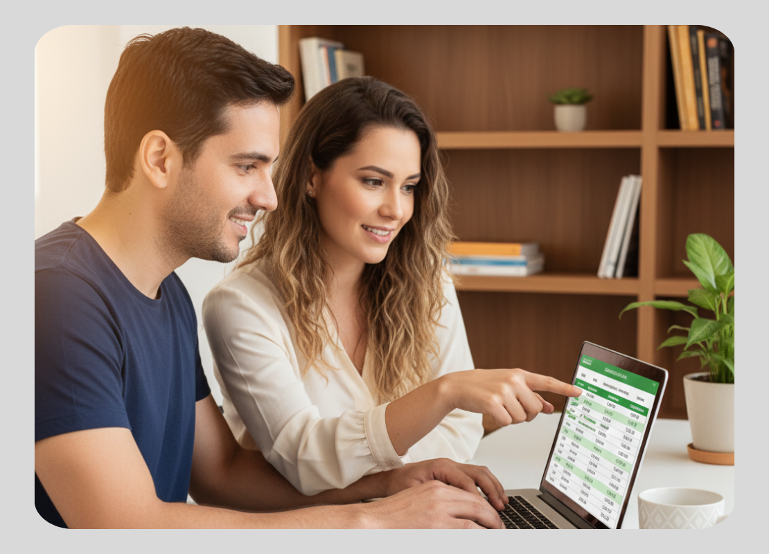Aulas práticas mostrando na tela como preencher cada campo da planilha. É só dar play, acompanhar e ver seu lucro aparecer, mesmo que você nunca tenha mexido numa planilha.